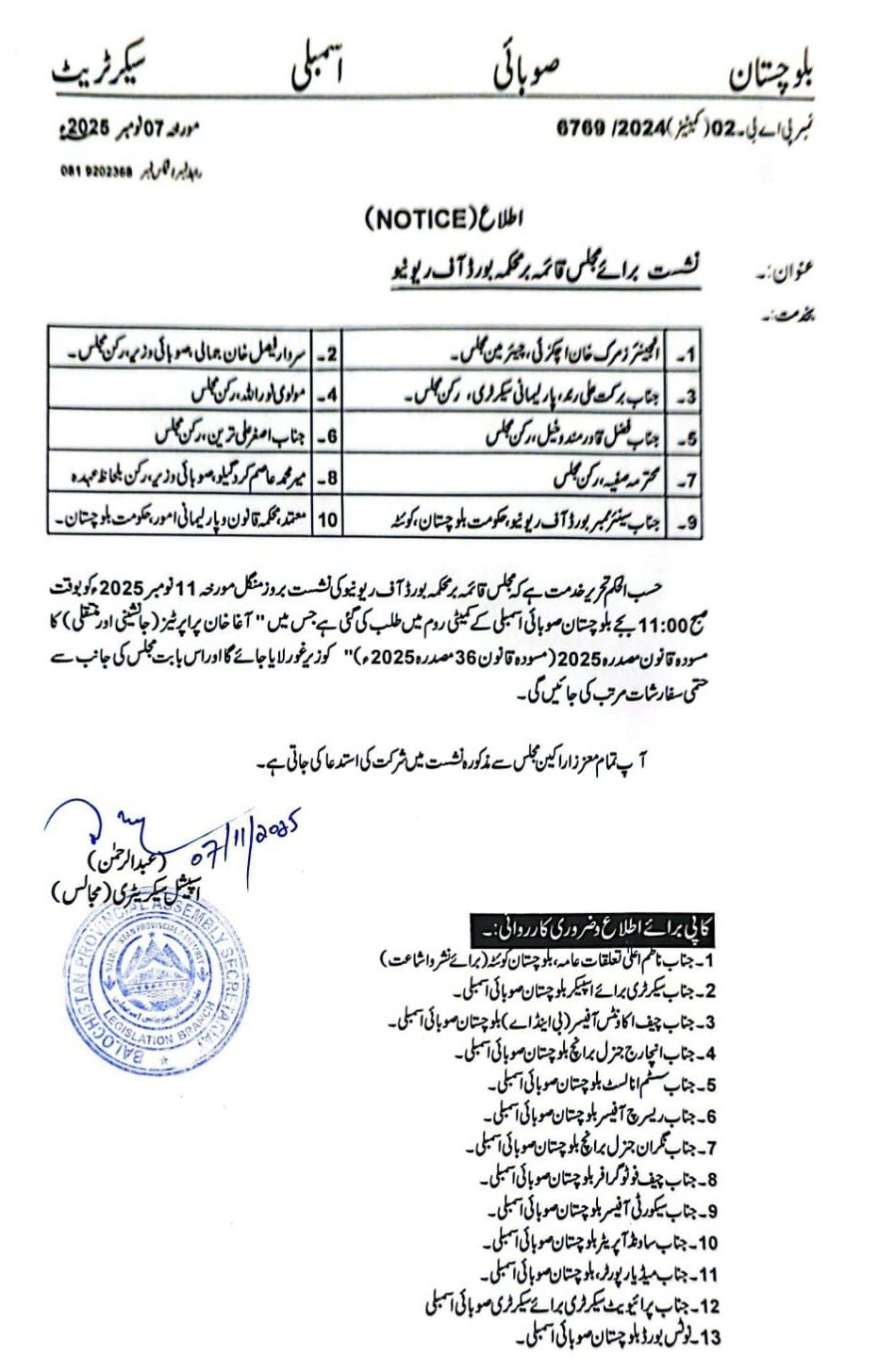 Press Release regarding 20th Nov 2025 Balochistan Assembly sitting.